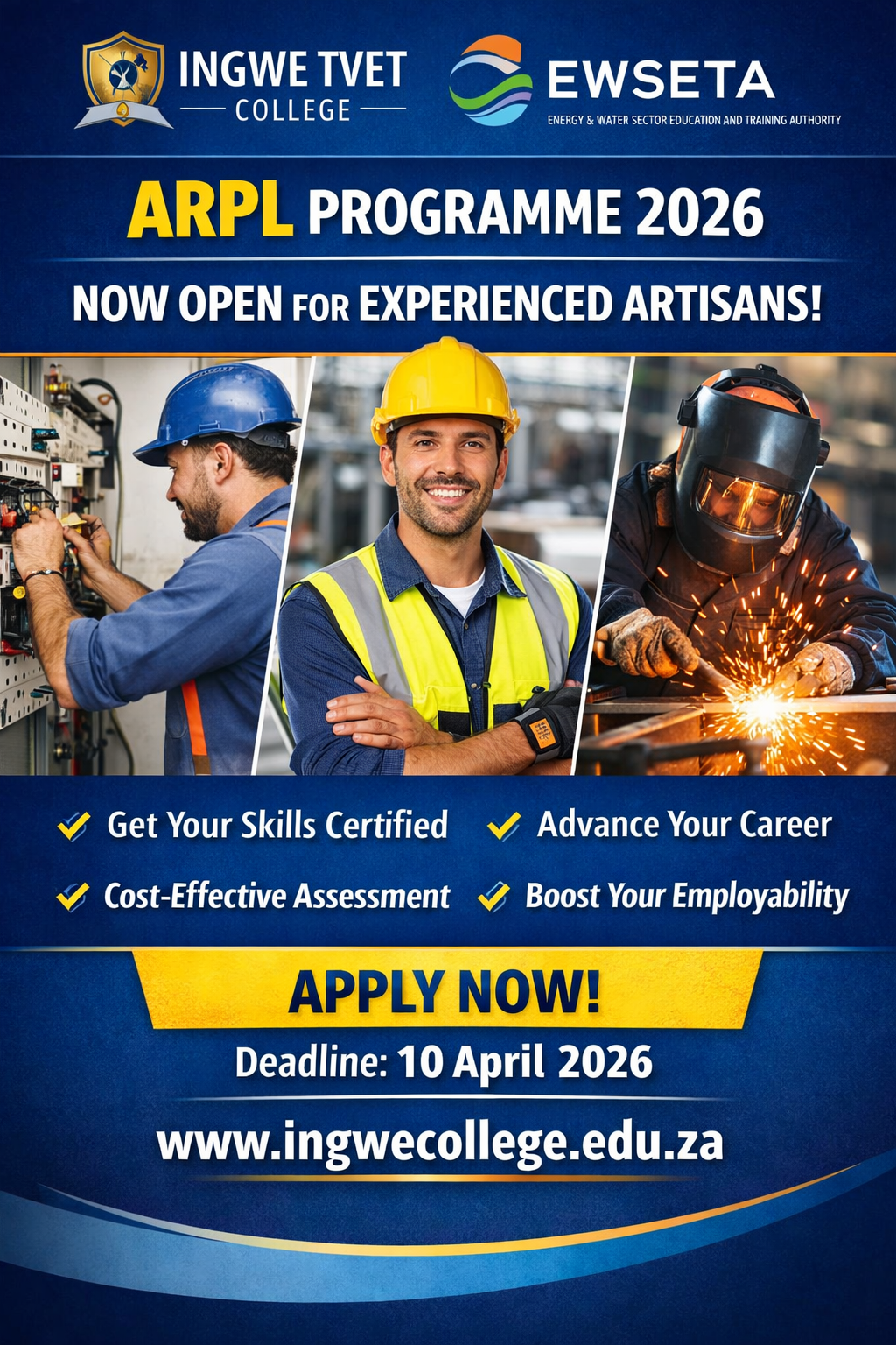 The Ingwe TVET College, in collaboration with the EWSETA, has officially opened applications for the ARPL (Artisan Recognition of Prior Learning) Programme 2026.