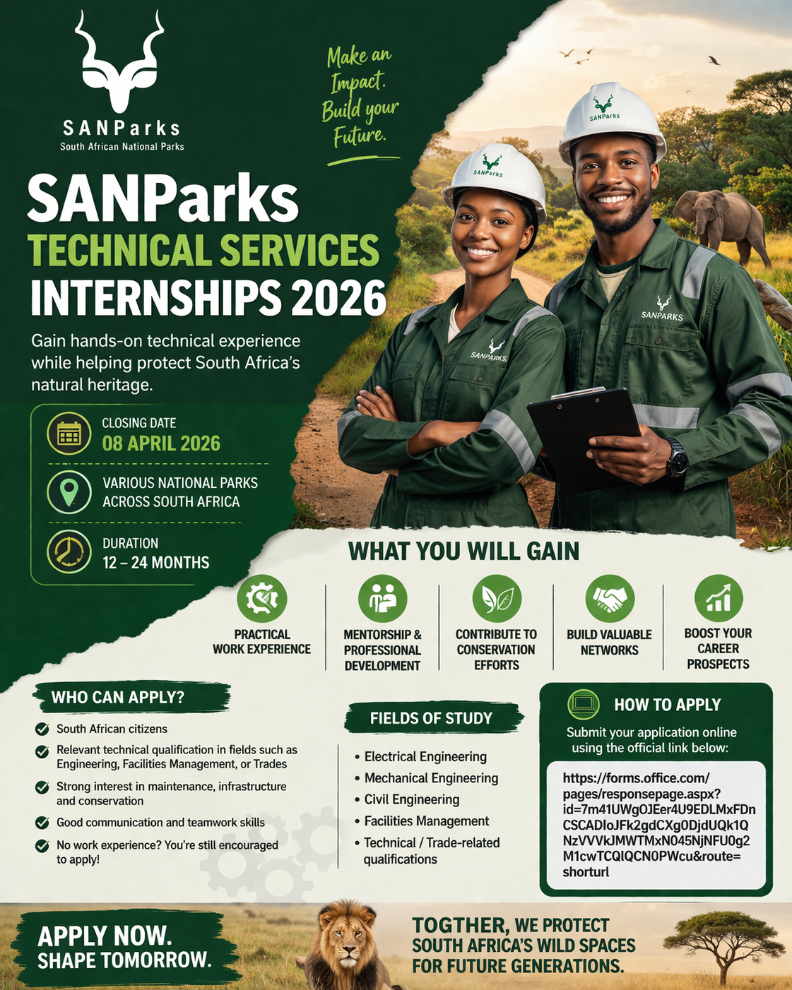 • SANParks Technical Services Internships 2026 – Apply Before 08 April Deadline